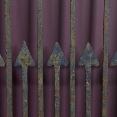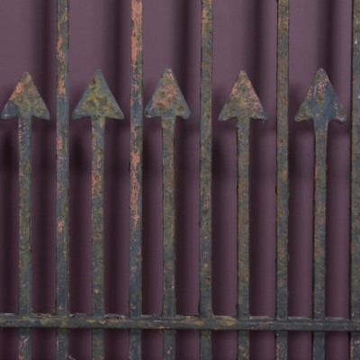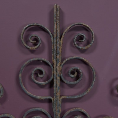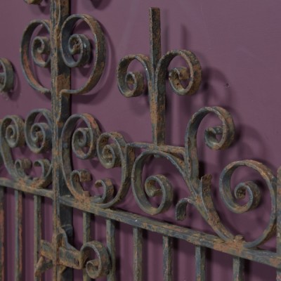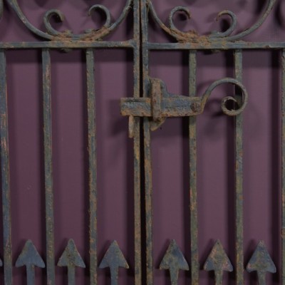 A small pair of antique iron gates of rivetted construction in sound (including base rails - no rot) and complete condition. English 19th century.