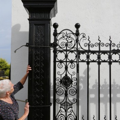The gates came into the possession of Salvage experts Jim and Sean Corcoran in the late 90’s. The gates have been in storage for the past 10 years since their business ‘The Salvage Shop’ closed down. They have lovingly restored the entrance and they are ready to be installed.
