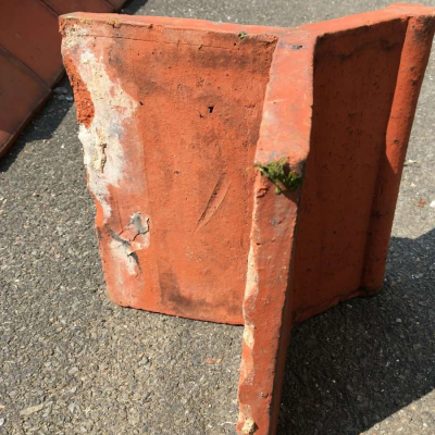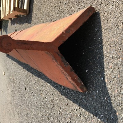 Ridge Tiles Crested Roll Top Victorian Final Tiles Reclaimed Salvaged 8 off 12" (30.5cm) 90 degree pitch Stock code Ridge043 Red Clay