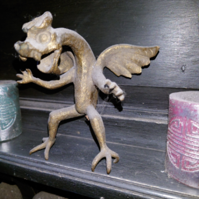 A set of 3 bronze Gargoyles copied off a font lid bracket Italian circa 1825 with an age patina .