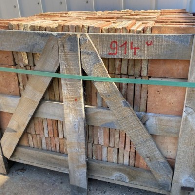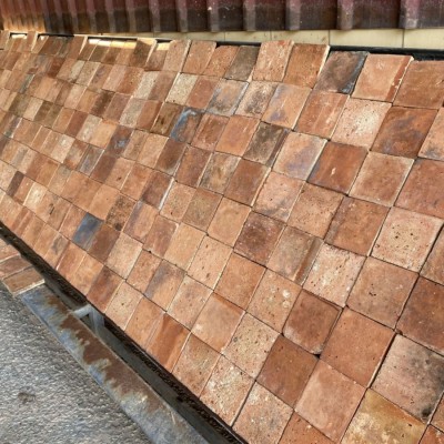 BCA ref 01616 : Antique reclaimed French terra-cotta tiles from BCA Antique Materials in North West France. These hand-made reclaimed antique terracotta tiles are sourced mainly from old rural properties undergoing refurbishment or demolition. These hand-made tiles were made locally and fired in wood-burning kilns, often on a village level. Production could alternate between bricks, roof tiles, floor tiles and other much needed pottery artefacts. These tiles are 19th century or older.