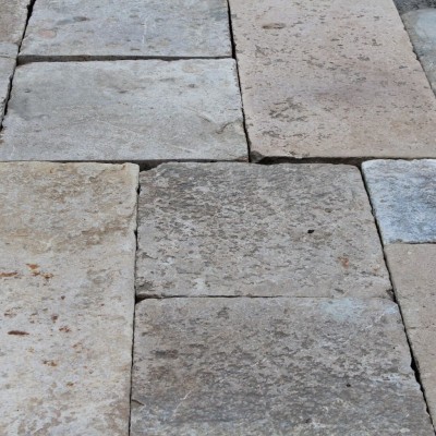 BCA Ref 01364: Antique reclaimed French Bourgogne limestone paving slabs, in mixed format random sizes. Typical provenance is from centuries-old farmhouses and occasionally more noble or public buildings. Salvaged Burgundy limestone flagstones, antique stone floors. Reclaimed “Dalles de Bourgogne”. Current stocks have been sawn to thickness approx. 30mm (1.2 inches) but retaining the upper surface patina, but the full thickness heavyweight flagstones are also available. Need in more cream colour, or thinner ? See BCA ref S10096 which is available from stock in thickness approx. 30mm (1.2 inches). We do not indicate a particular quantity for these BCA ref S01364 because we are managing to maintain a certain level of stock, to cater for small to major historic flooring projects in France and overseas.