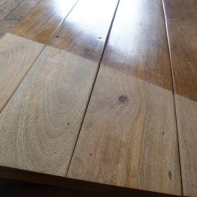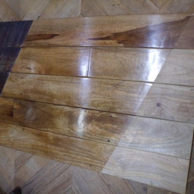 1000 mts sq of solid hardwood floorboards reclaimed from the famous " Shaka Zulu " restaurant in fashionable Camden in London........ Shaka Zulu had a multi million pound bespoke designed interior, and no expense was spared when it came to the quality of the materials used......We believe the floorboards are a timber called Indigbo or Black Afara, and were sourced from Africa, specifically for this project.......The timber is extremely beautiful in respect to grain patterns and figure........Over the duration of the restuarants existance, the floor had all manner of protective coatings applied, but once sympathetically removed and re polished, the true beauty of the wood is revealed......This consignment is truly unique and as the images show from the sample panel we have prepared, these boards would grace any period property, or restoration project, and offer a quality alternative to the go to Pine or Oak normally specified. In my opinion the appearance here is not dissimilar to high grade African Walnut........The boards are 160 mm wide and the lengths are random with a thickness of 21 mm and solid..........We can restore the surfaces on these by hand if required....Pricing is from £ 75.00 per sq mt for the boards untouched, as they are, and increasing from there depending on the work we are asked to do to them..........Bob....07733263540