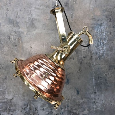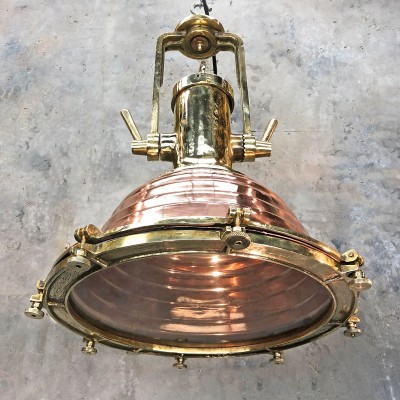 Beautiful vintage industrial large copper ceiling lighting, reclaimed from cargo ships. Made by the German manufacturer Wiska during the 1970's.