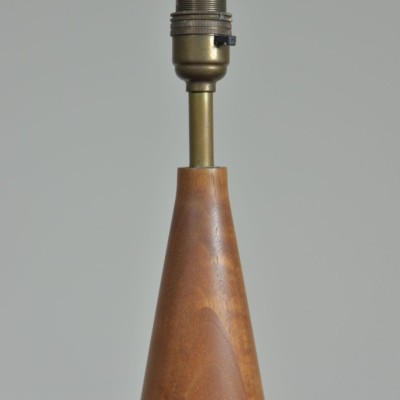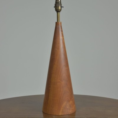 A tall turned conical hardwood / teak? table lamp. Canada, mid century.