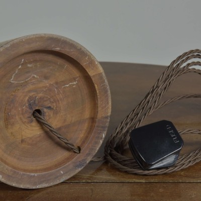 Rewired with 3m fabric flex, patinated safety-switched lampholder, 3amp traditional phenolic plug. Pat tested.