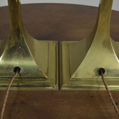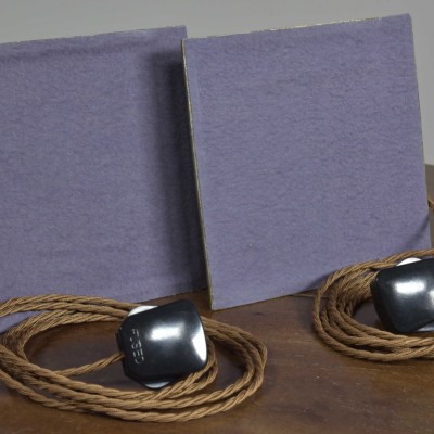 Rewired with 3m fabric flex, patinated safety-switched lampholders, 3amp traditional phenolic plug. Original grommets / guides to bases. New quality fabric to bases. Pat tested.