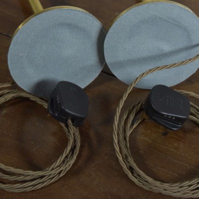 Rewired with 2.5m fabric flex, brass safety-switched BC lampholders and traditional 3amp phenolic plugs. New fabric bases. Pat tested.