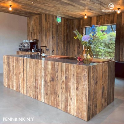 In addition to barnwood cladding for exterior use, we also provide reclaimed wood wall cladding for interior applications.