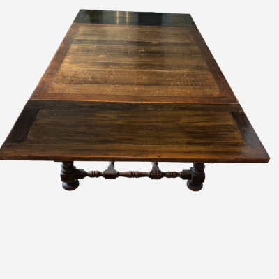 Early 20th Century Solid Oak Draw leaf Table. Very good conition and very structurally solid for its age. With unusually rare matching barley twist stretchers underneath.