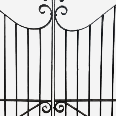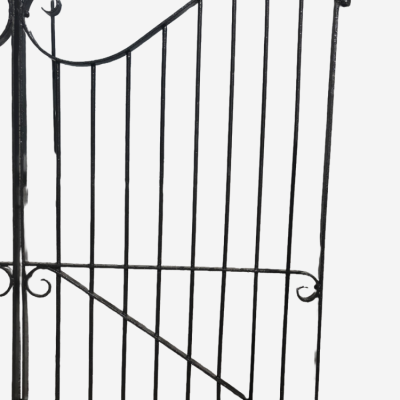 A pair of exquisite georgian gates. These gates have come from a period village church in Lincolnshire and are believed the be the gates to Heaven! These gates are adorned with scrolls which is a common georgian fashion when crafting metal work. All hinges are fixed to the gates meaning they are ready to fitted straight away.