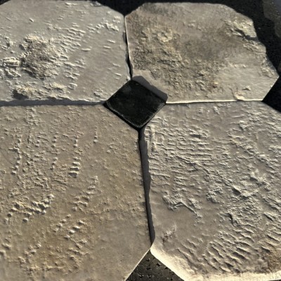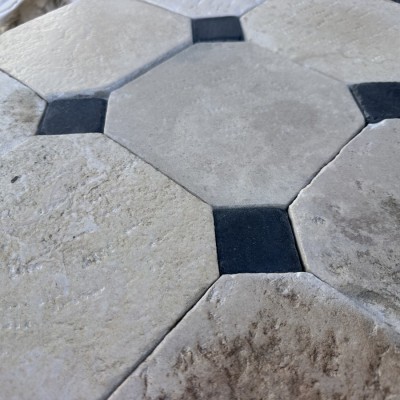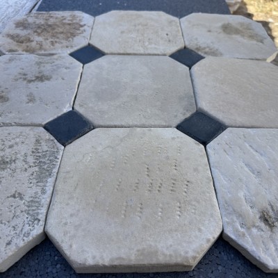 Dimensions: 19 cm with a 5 cm Recycled Black Slate Cabochon, approximately 2.5 cm thick, truly beautiful, in Reclaimed type Bourgogne limestone and black cabochon ,