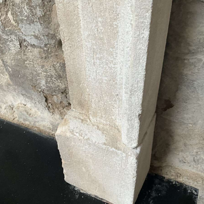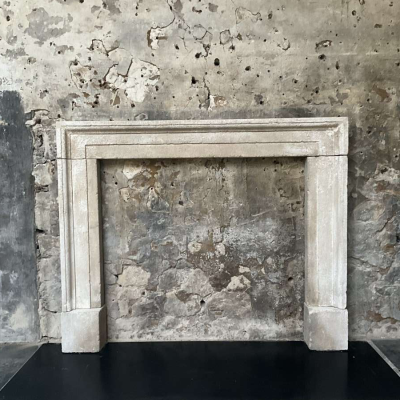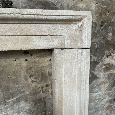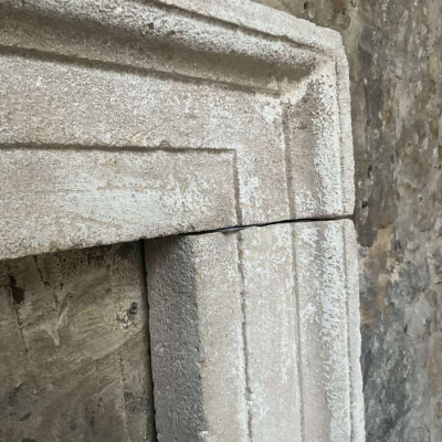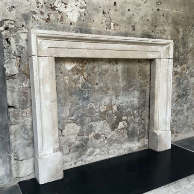 An aged copy of a Bath stone 18th Century original fireplace surround hand-carved in Somerset complete with a unique distressed limewash patina. Overall width 143cm x overall height 116cm. Opening 106cm wide x 96cm tall. Other sizes can be made. Please call or WhatsApp Simon Wharton on 07974 579694