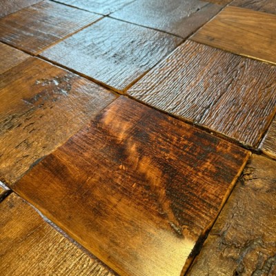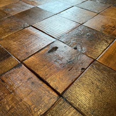 Antique Oak restored tiles………Stunning hand restored in our workshops 180mm x 180mm x 21mm kiln dried to between 9 and 11 %………These can be bonded down onto a ply or solid subfloor…….Laid on the square or diamond pattern………Stunning alternative to terracotta or marble……..