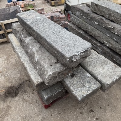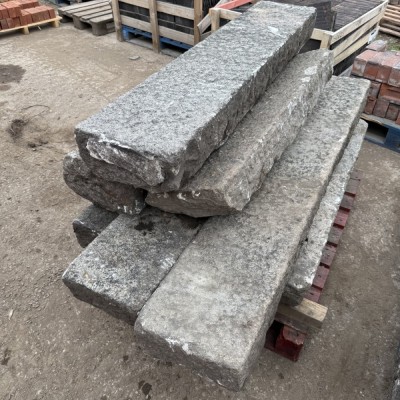Authentic reclaimed granite kerbs measuring 12" x 6", salvaged from period properties and urban landscapes. These substantial stone pieces showcase the natural weathering and patina characteristic of genuine heritage materials. Ideal for garden edging, landscaping features, or restoration projects requiring authentic period stonework. Each kerb retains its original surface finish and dimensional integrity, making them suitable for both traditional and contemporary garden designs. A sustainable choice that combines practical functionality with the distinctive character only reclaimed stone can provide.