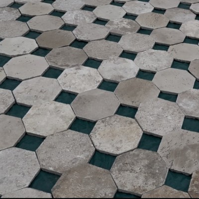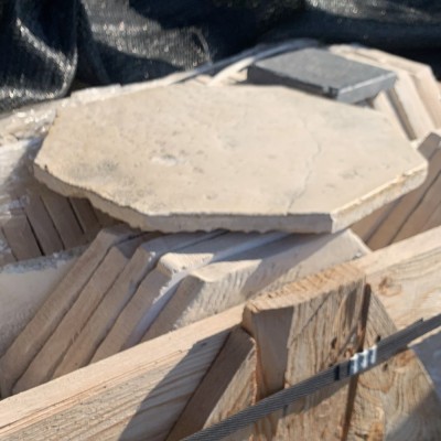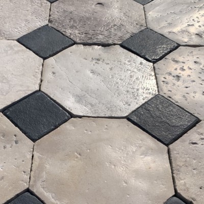 Cabochon flooring, Authentic Recycled Octagonal French limestones, perfectly prepared and packaged, ready for shipping worldwide