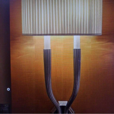 EX SAVOY HOTEL.....Suite 340......A Double illuminated Wall Sconce – Ruhlmann Double Sconce by Chapman & Myers in Polished Nickel with Shade An elegant wall-mounted fixture from the Ruhlmann series by Chapman & Myers, designed for Visual Comfort’s Signature Collection. Each double sconce features two vertically ribbed arms in polished nickel rising from a sculptural backplate, supporting a gently curved shield shade. The pleated linen diffuser casts a warm, ambient glow. The design draws inspiration from early 20th-century Art Deco, with its symmetrical form, fluted metalwork, and understated luxury 70 x 34cm (Loc 340)