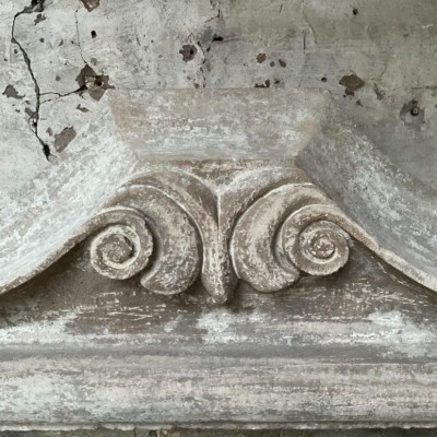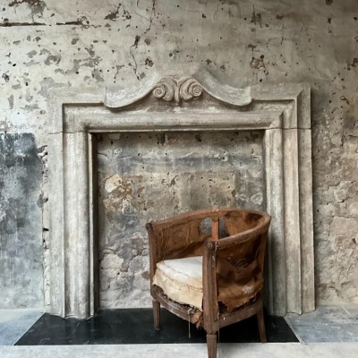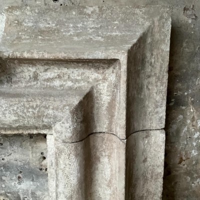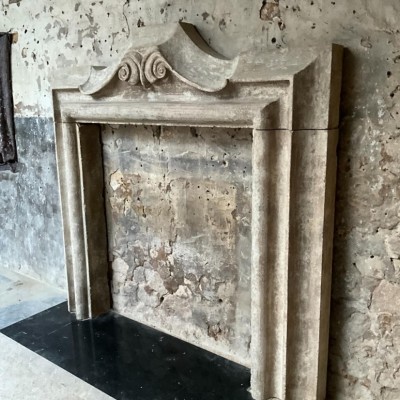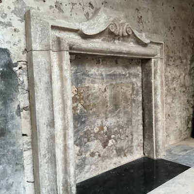 A faithful copy of a 17th Century Italian fireplace with an authentic distressed patina made from reclaimed Bath stone doorway elements.