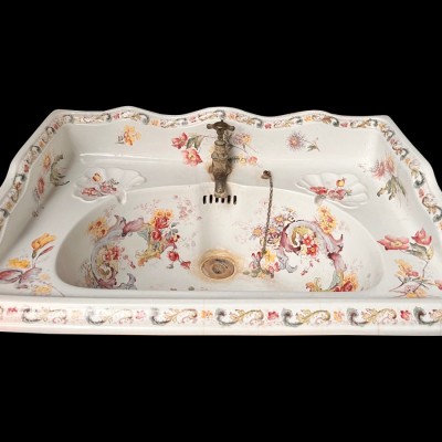 Wonderful Victorian patterned sink with original cast iron bracket, original single tap, needs a descale