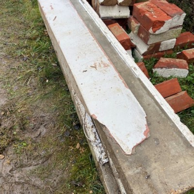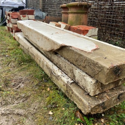 Four concrete lintels removed intact from a careful house deconstruction in St Neots.