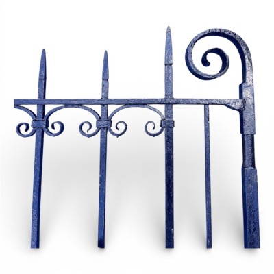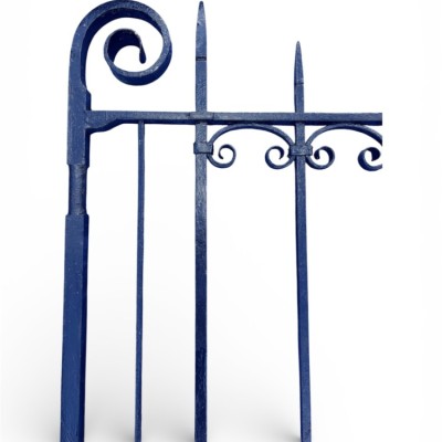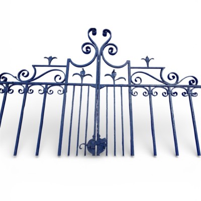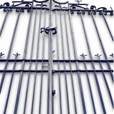 These gates are a mix of security and class with the spiked finials and the ornate curled centre piece bringing both gates together. The curls found on either end of each gate is a common feature in the Edwardian era.