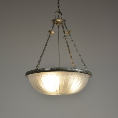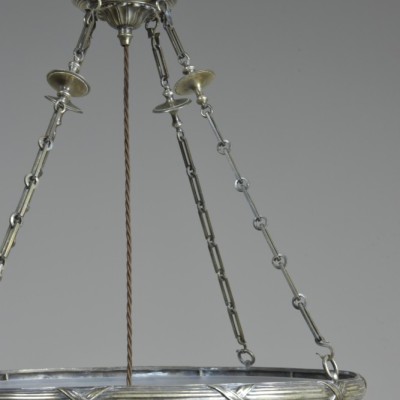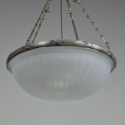 A splendid early 20th century light fitting by F & C Osler, the large satin etched and cut glass bowl with a reeded & tied silver plated cast brass mount.
