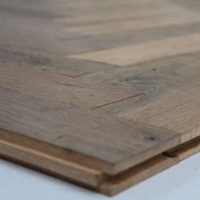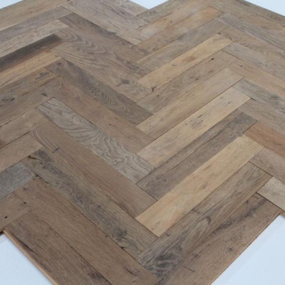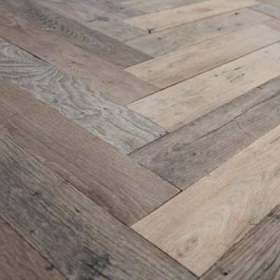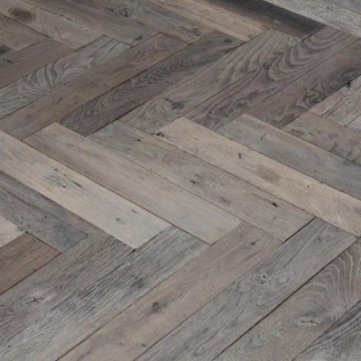 BCA Ref 49078 - Antique reclaimed French oak parquet in herringbone format, with upper patina. Reclaimed, salvaged wood flooring in antique French oak. Architectural salvage from France.