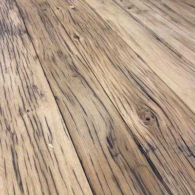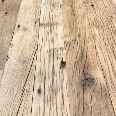 Reclaimed oak wagon boards with light planing to upper surface to obtain its characteristic "ingrained" look. The boards are of mixed lengths and mixed widths. Comes with straight edge or with T&G.
