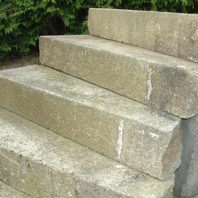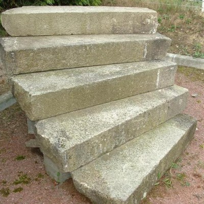 BCA Ref 00022: Job lot of 11 antique steps in granite. Can be used for stairs, or aligned for a long change of level. The 11 stair treads aren't all shown on the photos. Dimensions : step height 17cm (7 inches), tread width 120cm (48 inches).